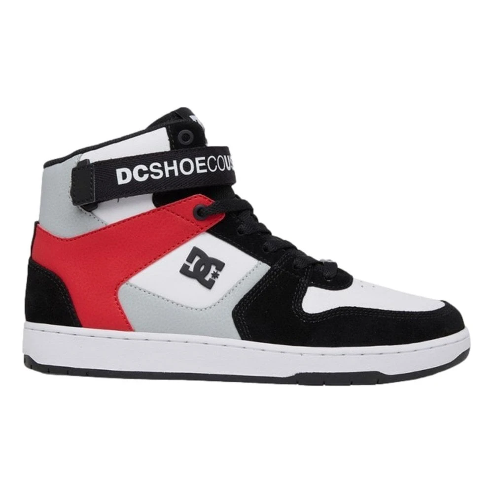 The DC Pensford Hi Shoes are men’s shoes featuring a metal logo, lace dubrae, mesh lining, foam padded tongue and collar for added comfort and support, ankle strap for support, DC’s trademarked Pill Pattern tread and cupsole construction.