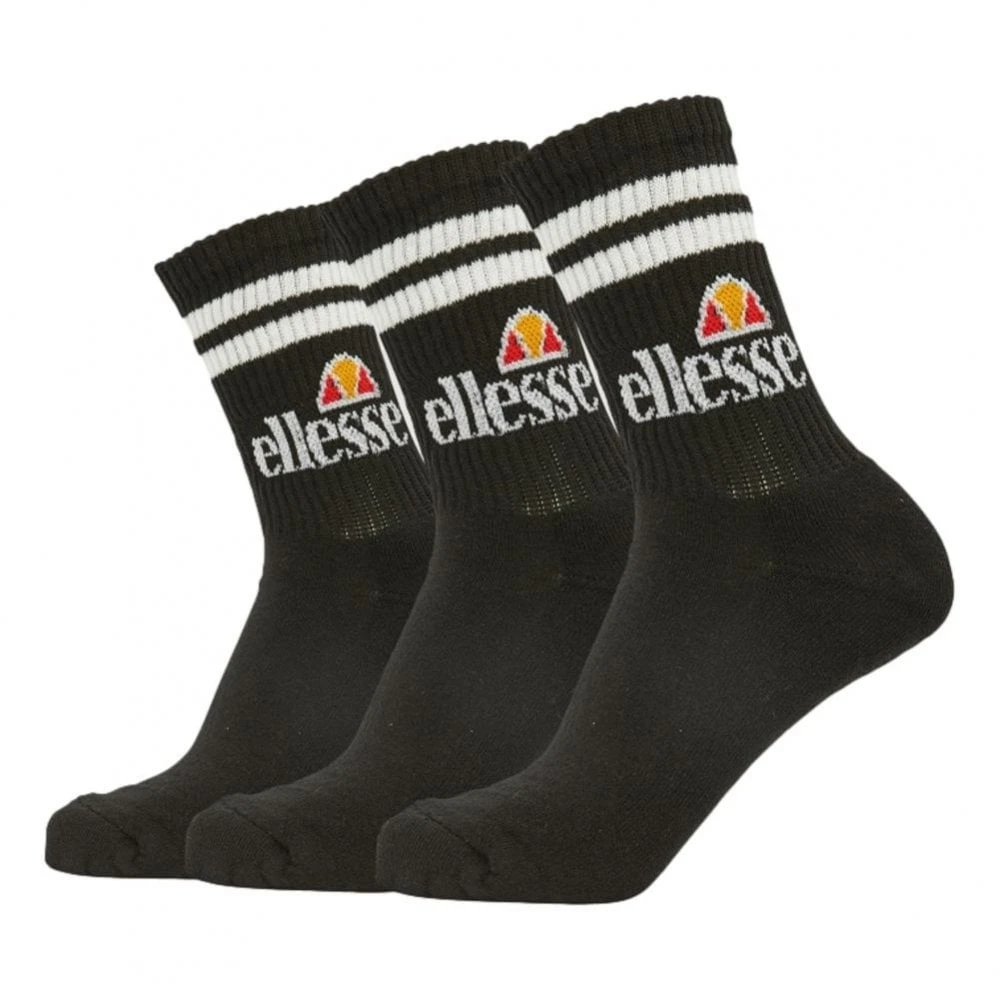 The Pullo sock. Step up your comfort. Made from stretchy cotton, our classic socks from our core collection offer 3 pairs per pack with ellesse branding across the ankle for brand identity with contrasting stripes above.