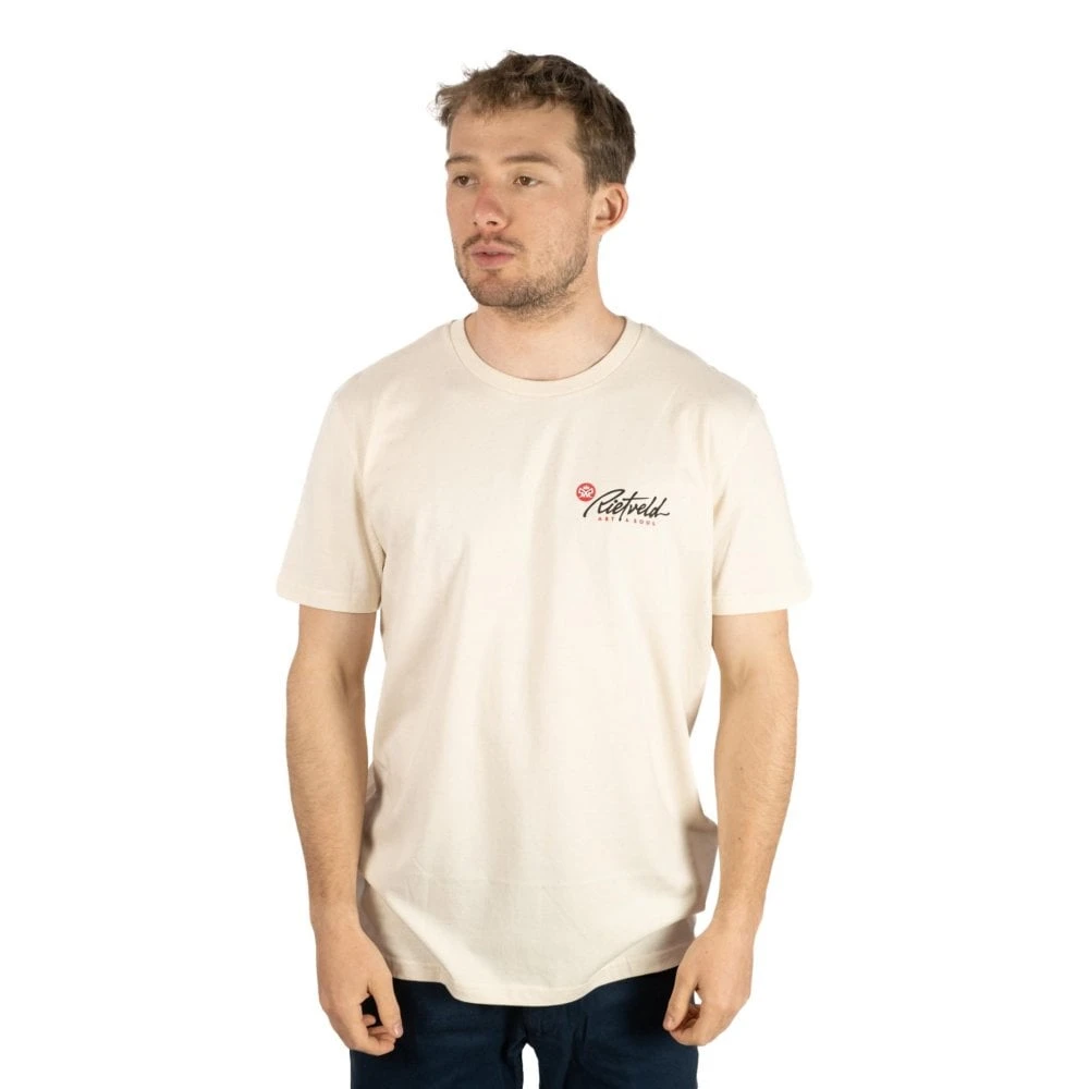 The Rietveld AI Classic T-Shirt is a short sleeve t-shirt, essential to any wardrobe. Featuring a Rietveld script logo on the left chest, and a screen print on the back.