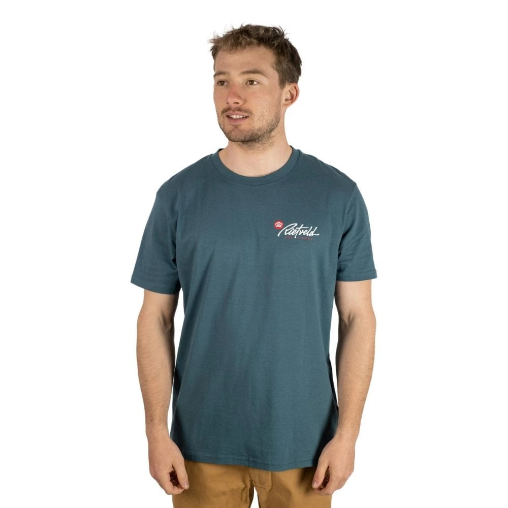 The Rietveld Liquid Dreams Classic T-Shirt is a short sleeve t-shirt, essential to any wardrobe. Featuring a Rietveld script logo on the left chest, and a screen print on the back.
