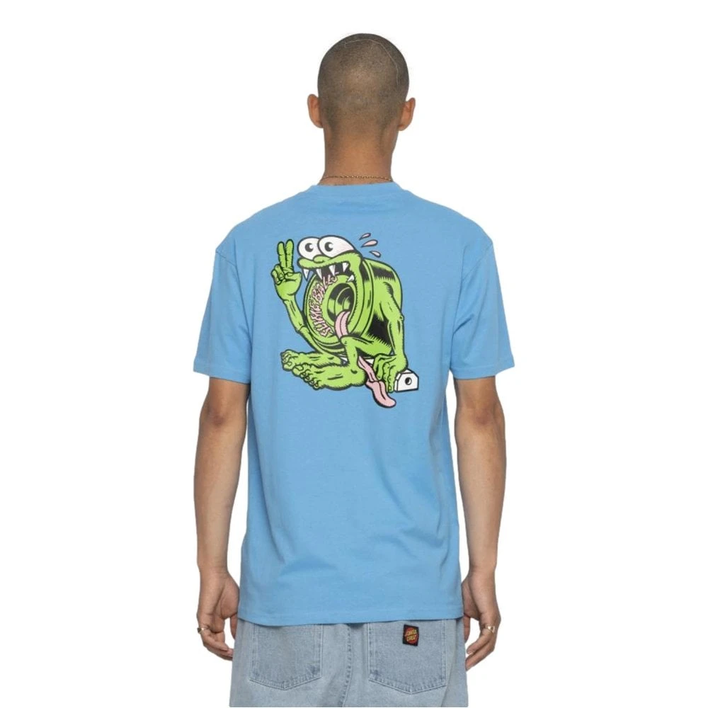 The Santa Cruz Slimey T-Shirt is a 100% cotton 200gsm jersey regular fit short sleeve t-shirt with left chest print and back print.