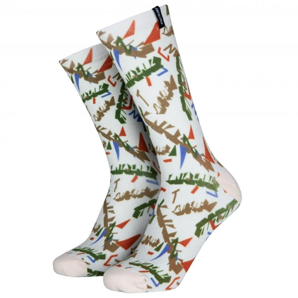 The Santa Cruz Stacked Socks are 75% bamboo 22% polyester 3% elastane crew sock with all over print and woven label.