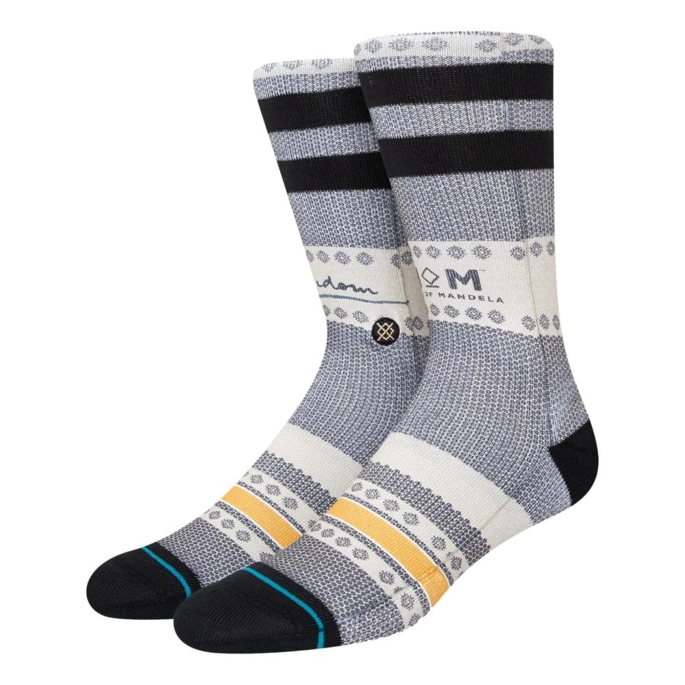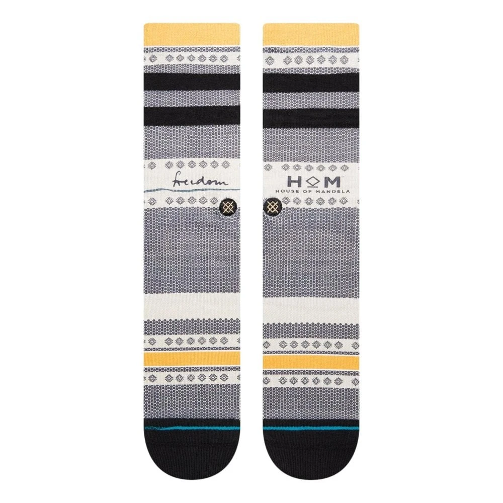 The Stance Freedom Mandela Socks are unisex socks. Pay homage to Nelson Mandela with these crew socks that are adorned with his handwritten word of “Freedom”. They’re made with medium cushioning and a flexible poly blend.