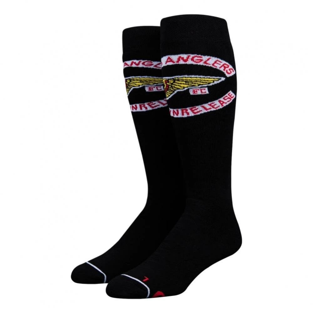 The Stinky Socks Chris Bradshaw Hells Anglers Socks in Black / White are cool socks made for comfort and creative style. Chris Bradshaw âHells Anglersâ signature design, extra stretch for maximum stability, comfortable upper band, natural fabric, extra soft, an elastic arch and ankle support, cushioned arch, padded toe, left-right specific toe shape.